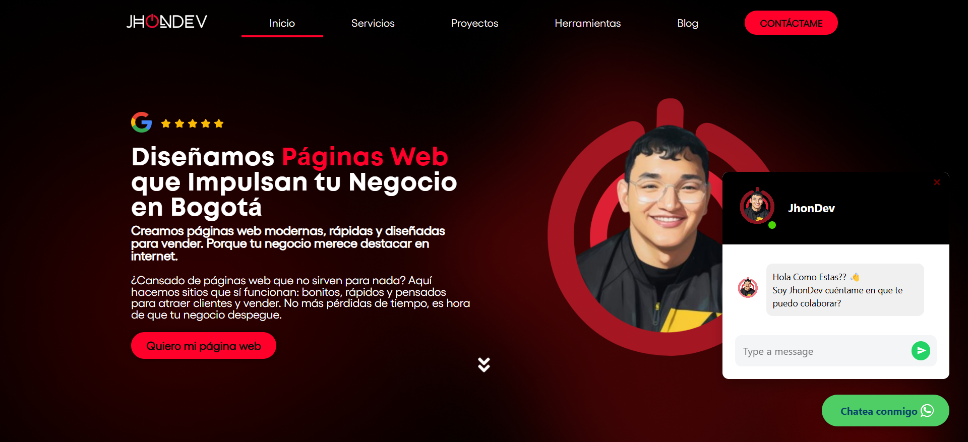 Sin duda, la mejor inversión de inicio de año fue contratar el servicio de diseño de páginas web con JhonDev. La entrega fue rápida y el resultado superó mis expectativas. Ahora tengo una página web profesional que no solo luce increíble, sino que también está optimizada para el SEO, lo que ha mejorado mi visibilidad en Google. Si buscas una página web en Bogotá que realmente ayude a atraer clientes y generar ventas, este es el lugar indicado. ¡Totalmente recomendado!